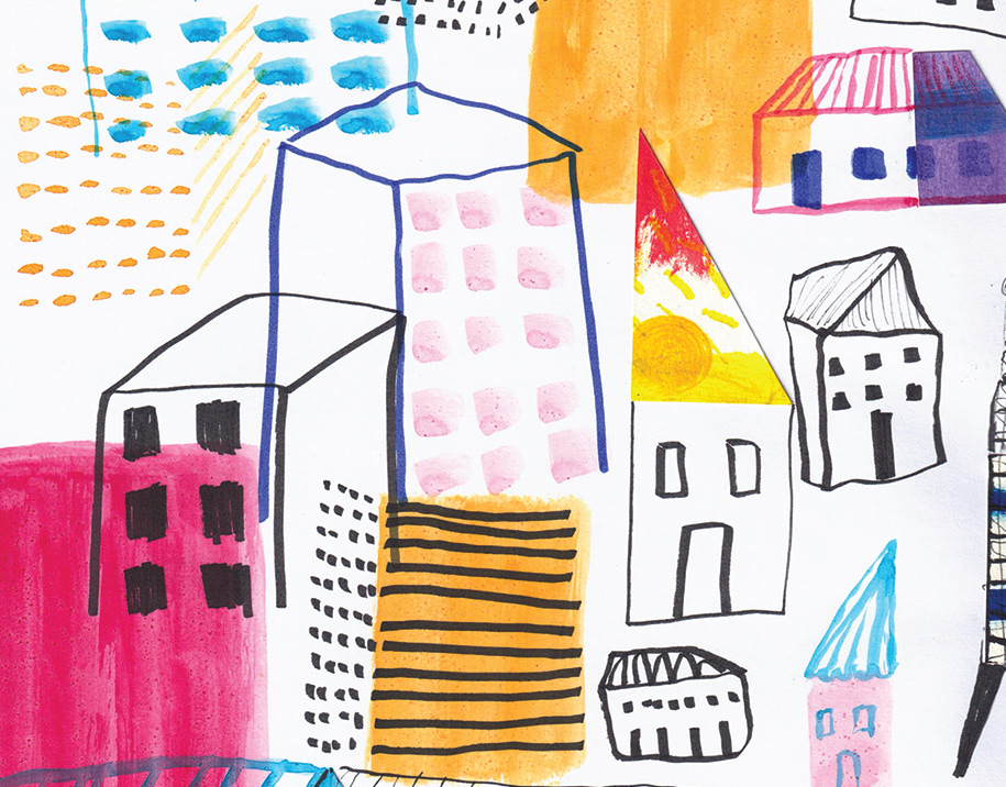 collage, china ink, color pencil