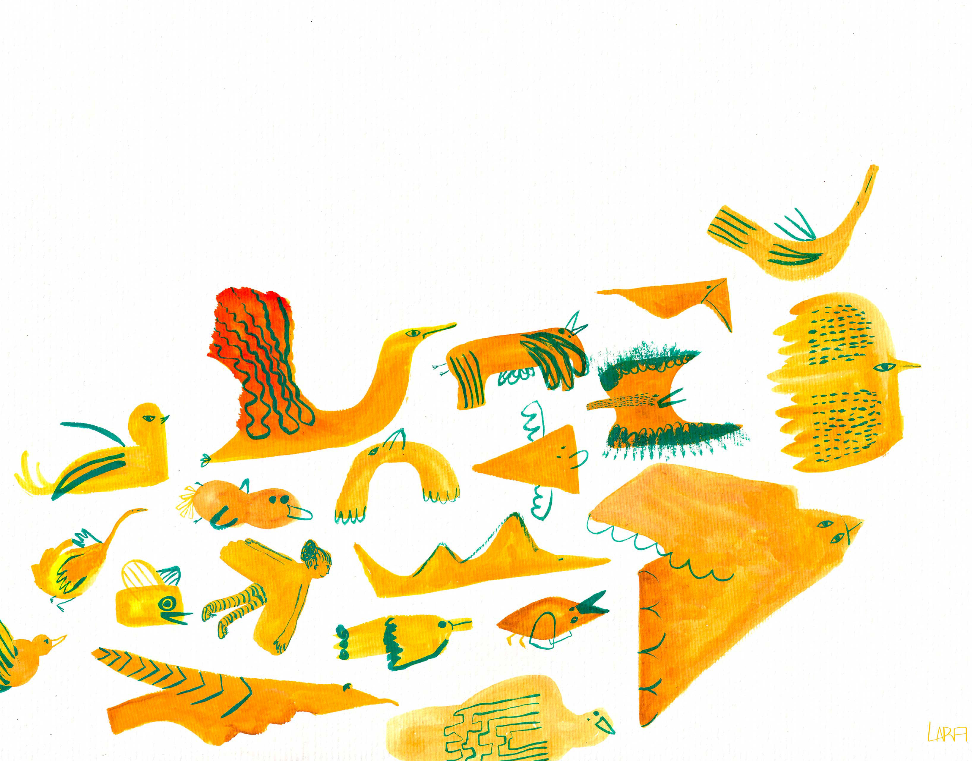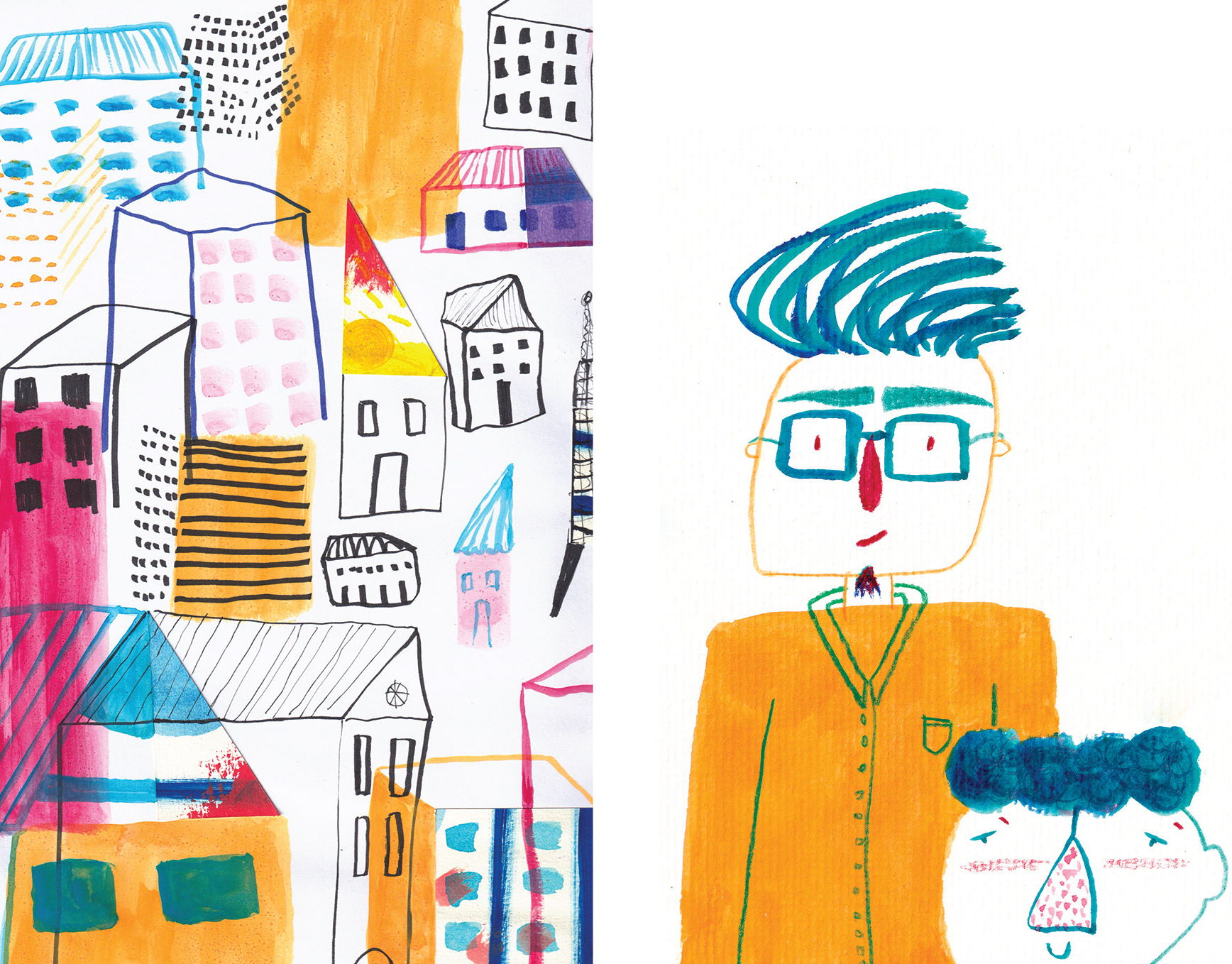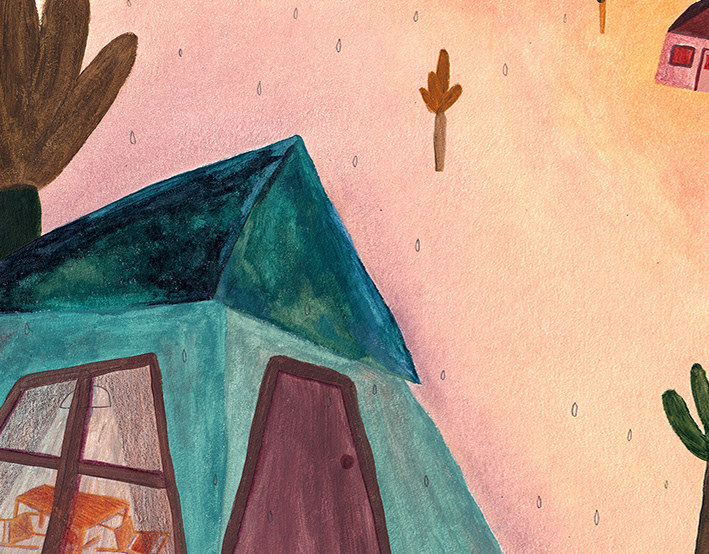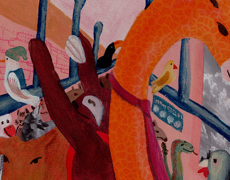 collage, china ink, color pencil