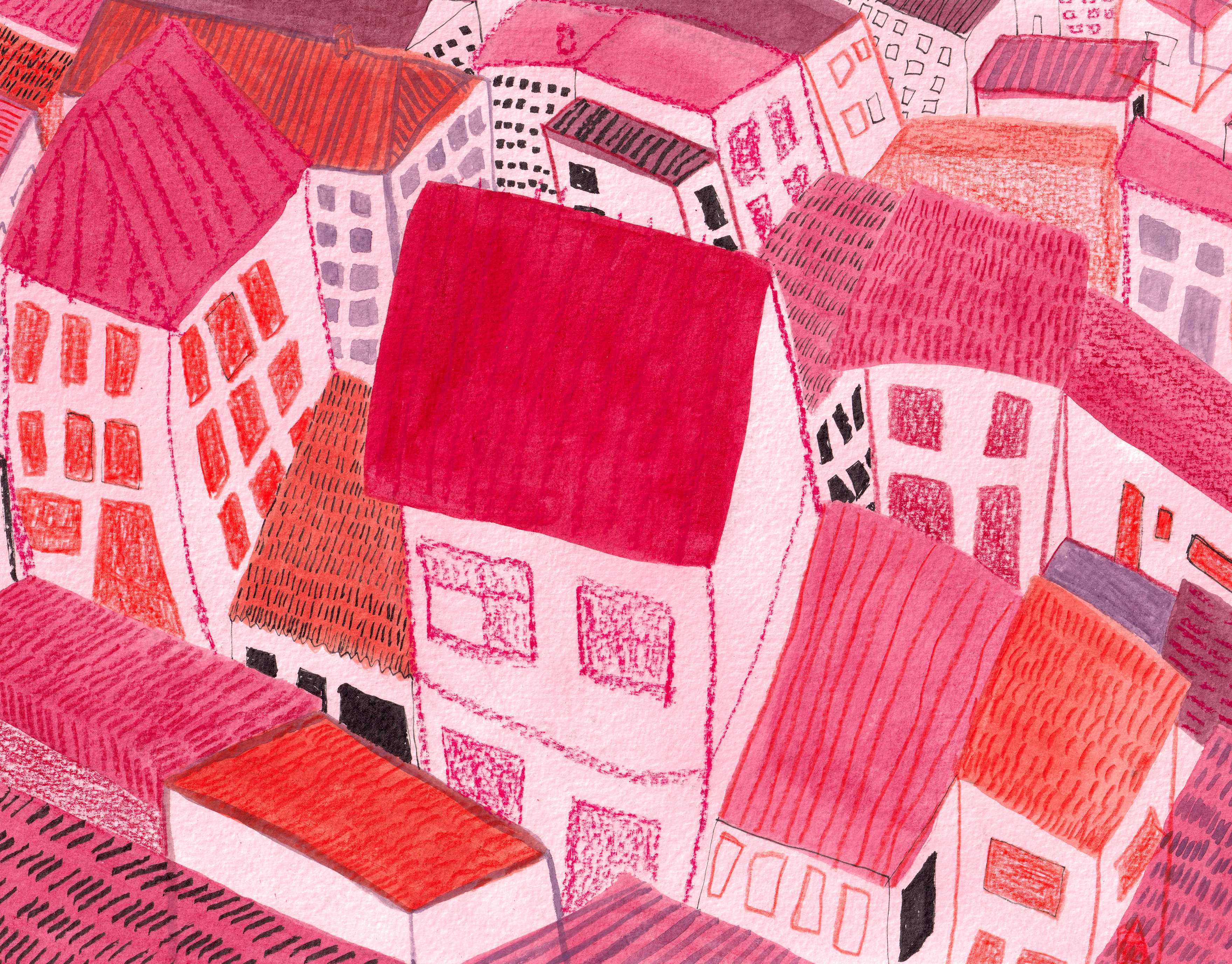 watercolor, color pencil, marker