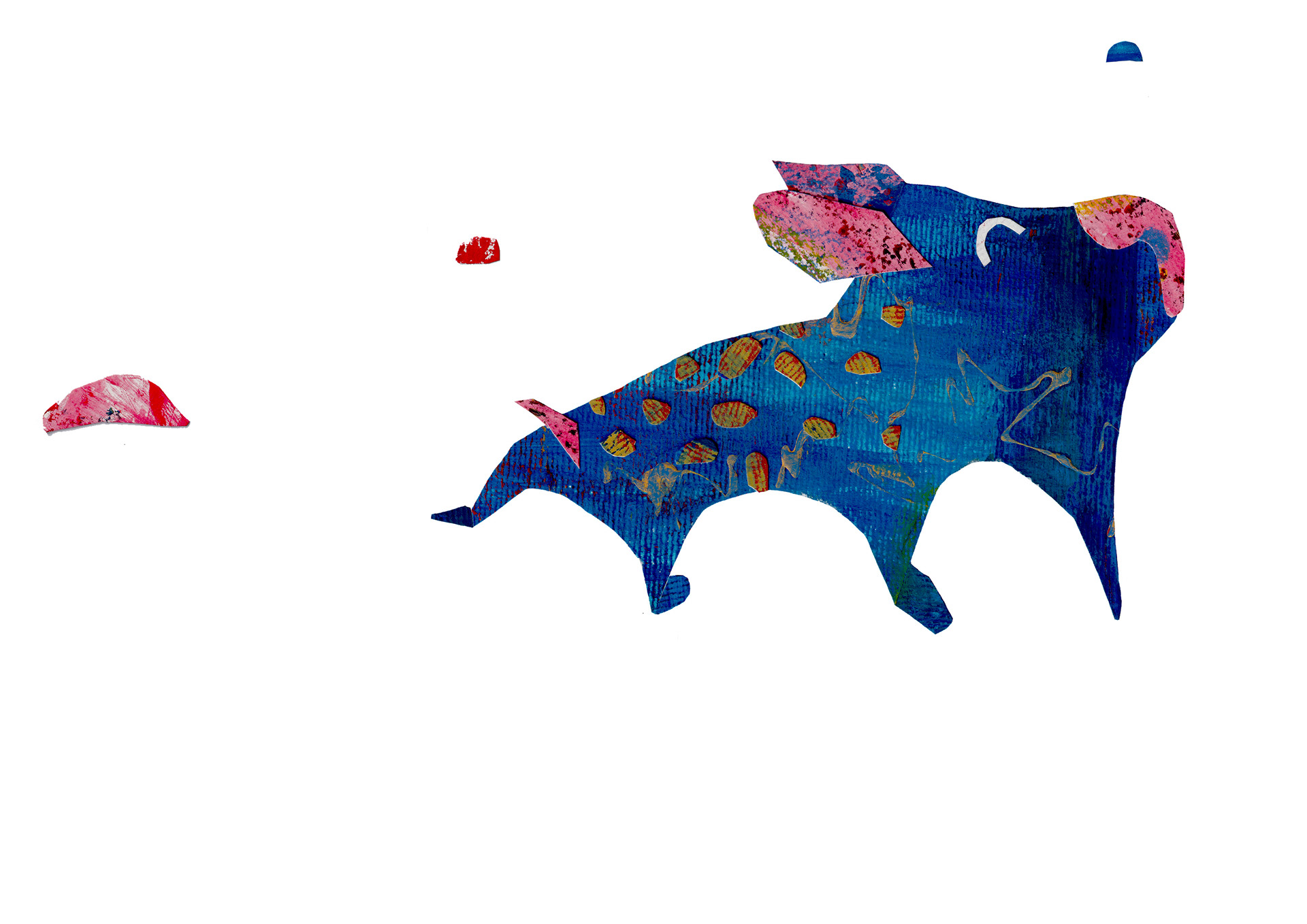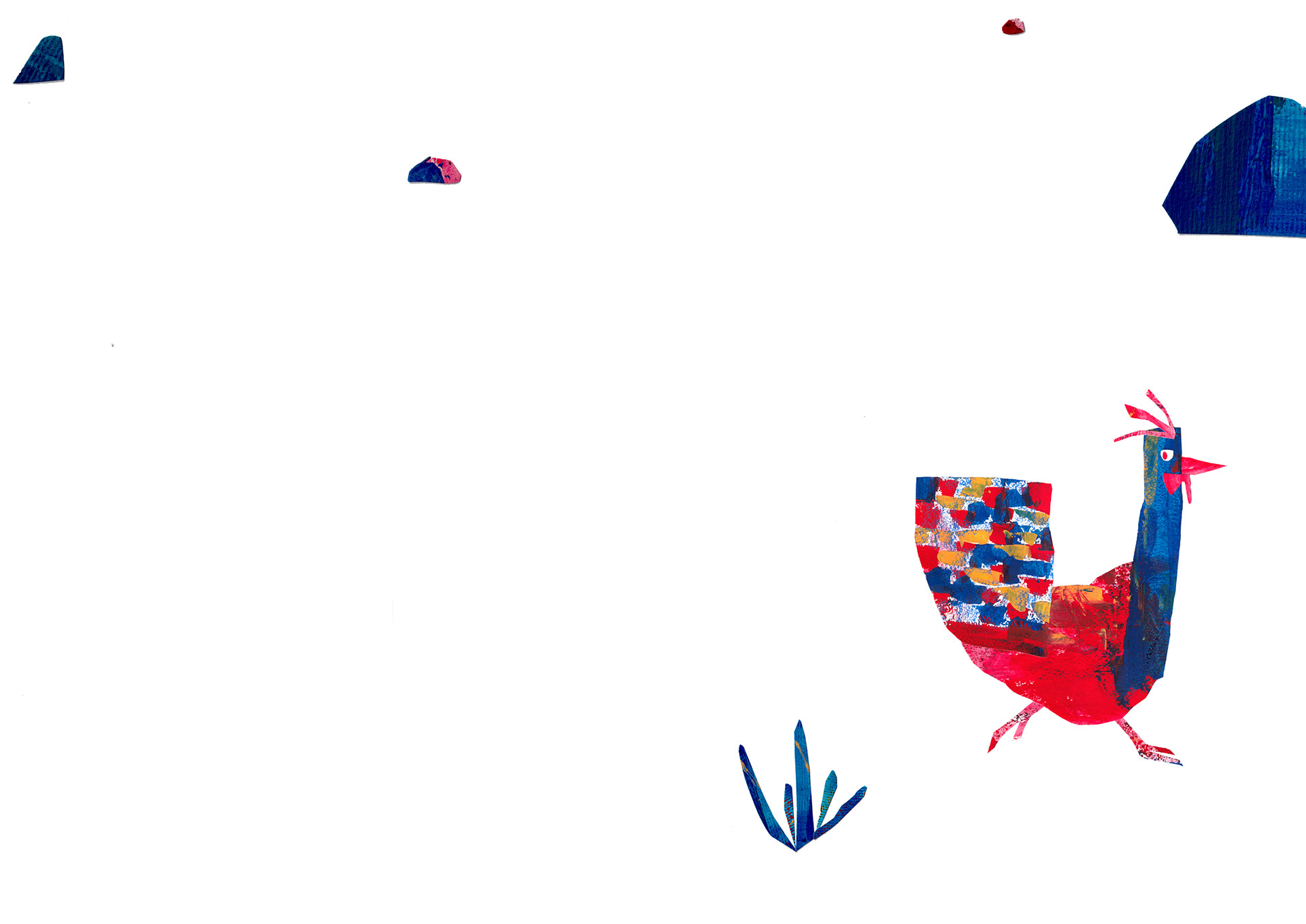 Illustration created from a study of hue contrast with primary colors, using empty space as part of the composition.